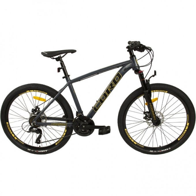 Исследуйте мир на велосипеде "CORD Horizon". Алюминиевая рама, навесное оборудование Microshift на 21 передачу и амортизационная вилка с ходом 95мм, блокировкой хода и регулировкой преднагрузки подарят полную свободу маневров.